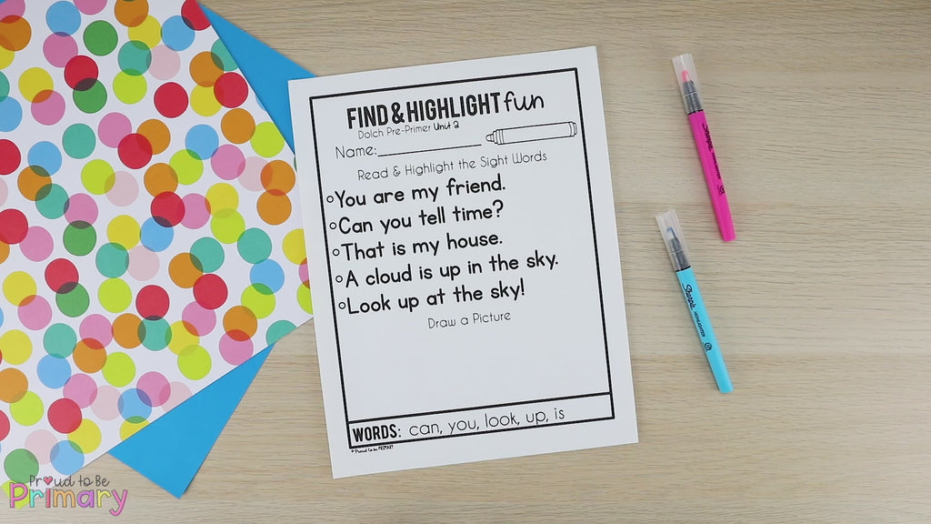 ✅Find & Highlight - Students use a highlighter pen to read each sentence and look for the words in their word list. When they find a word, they can go over it with a highlighter. Then draw a picture of one of the sentences.